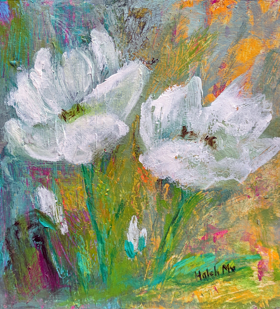 This is an 8x8 mixed media on paper (acrylic, pencil, pastel). It is varnished on both sides. It can be dropped into a frame as is or be matted for a larger effect. It comes with a silver frame.